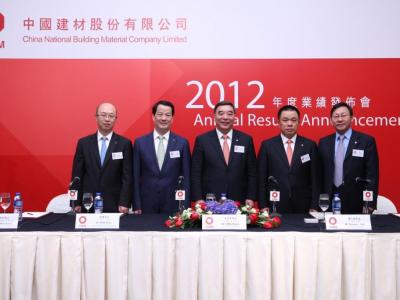 3月22日,中國建材股份有限公司(HK3323)發布2012年度業績公告。3月28日,中國建材公司董事局主席宋志平率管理團隊在香港召開業績發布會,向投資者全面匯報2012年年度經營情況。